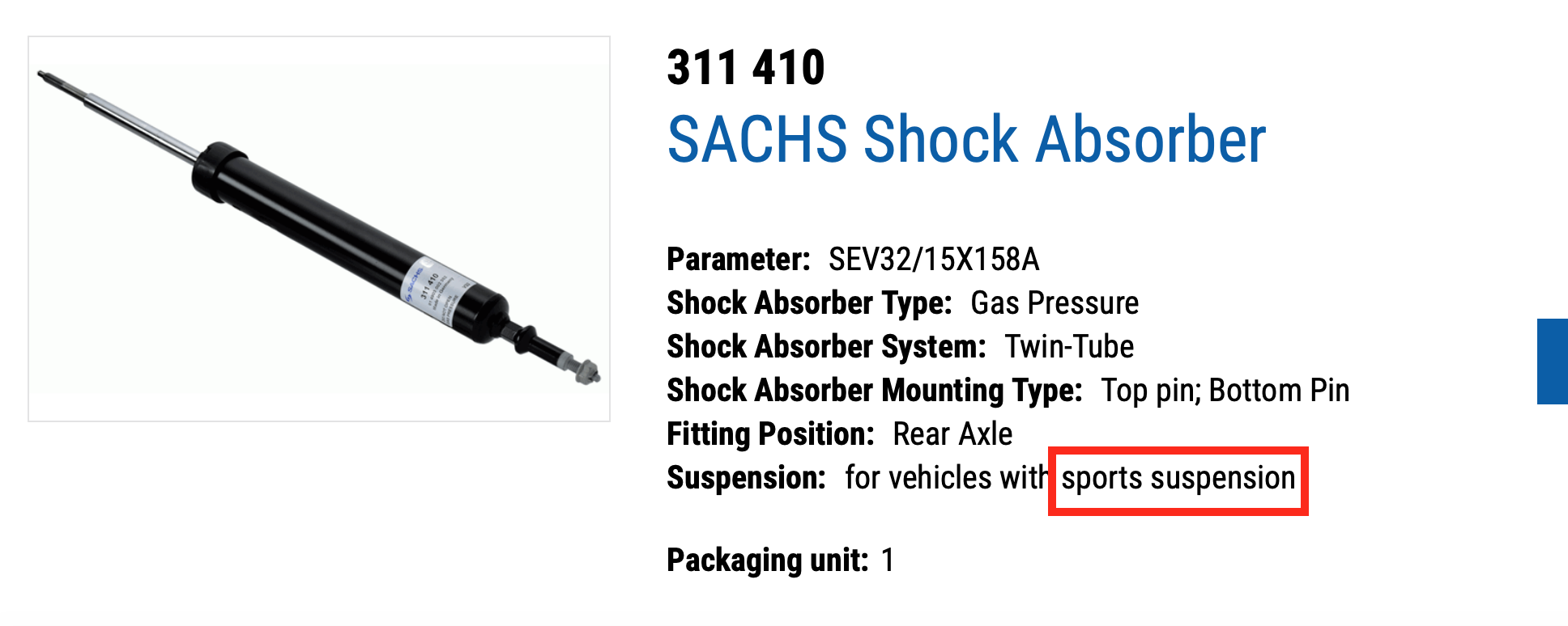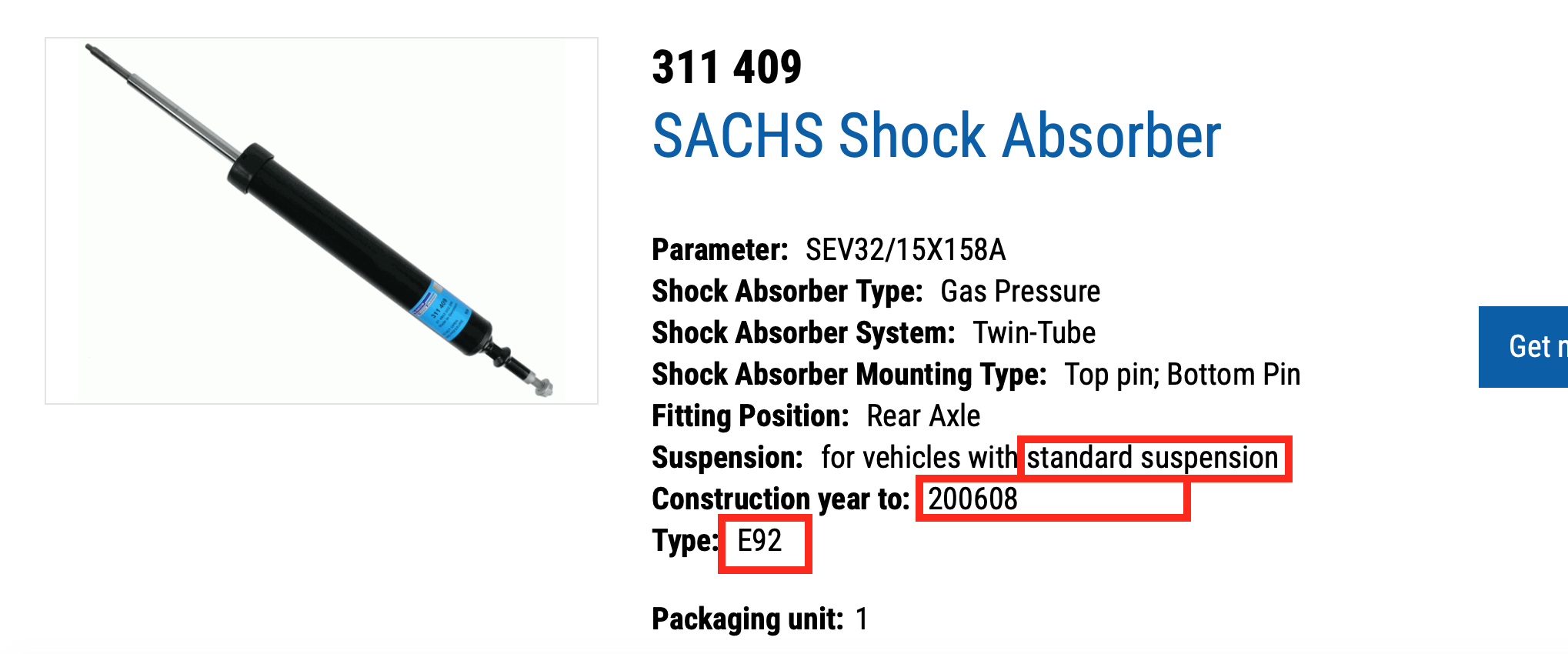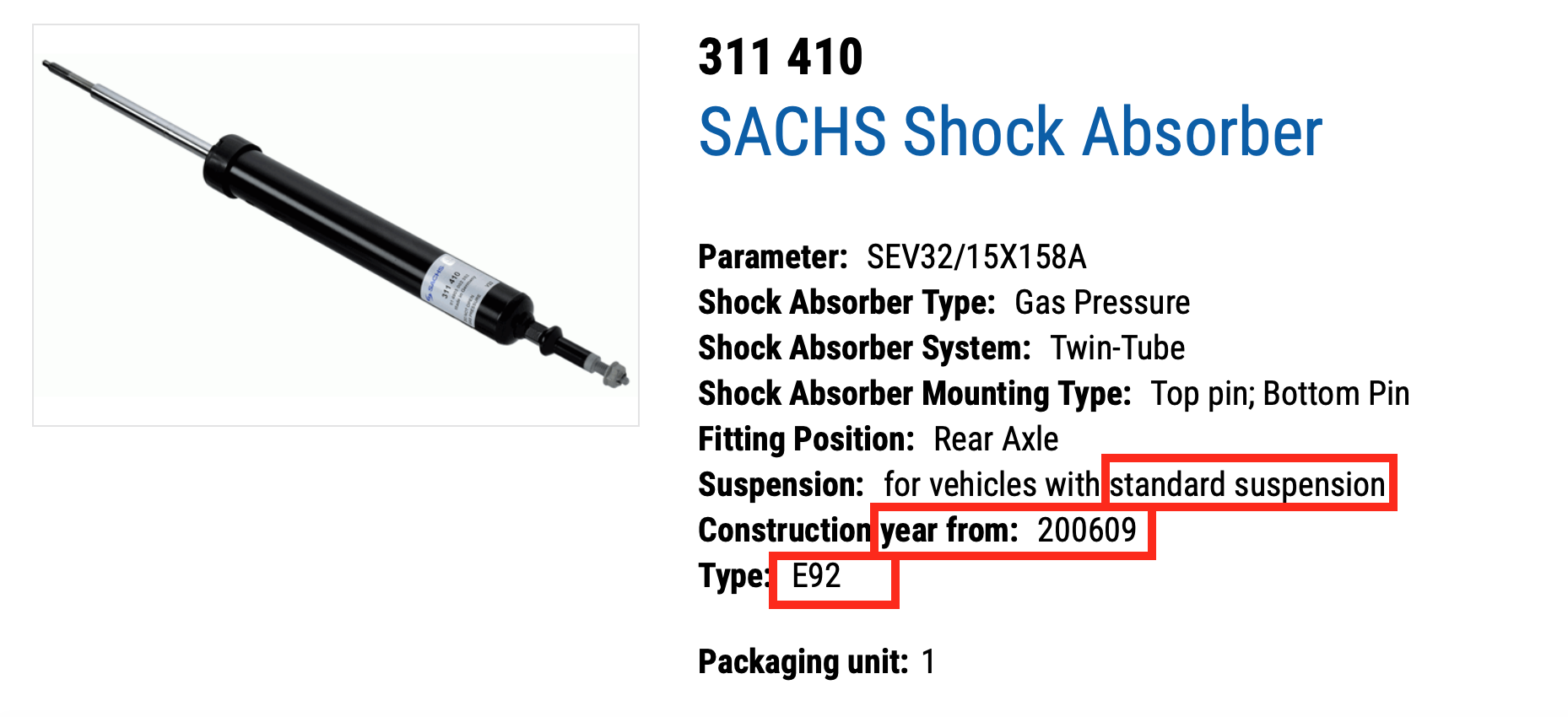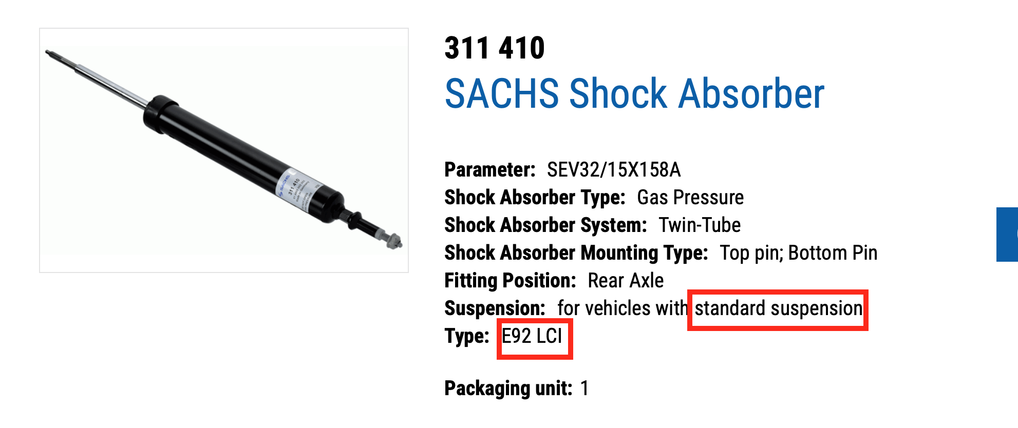 Not sure why Sachs specifies the same shock for both E92 LCI standard and M-Sport models. BMW and Bilstein have different part numbers: