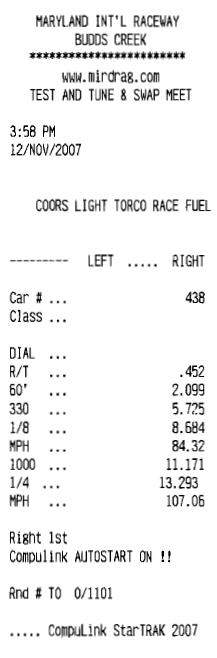 12.81 sec. @ 110.52mph (best trap 111.22mph)