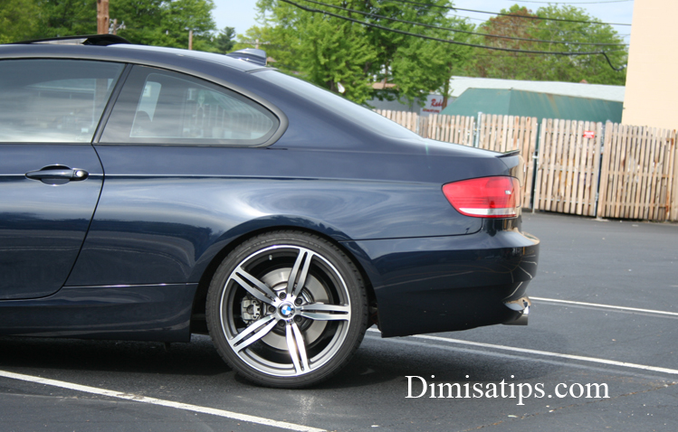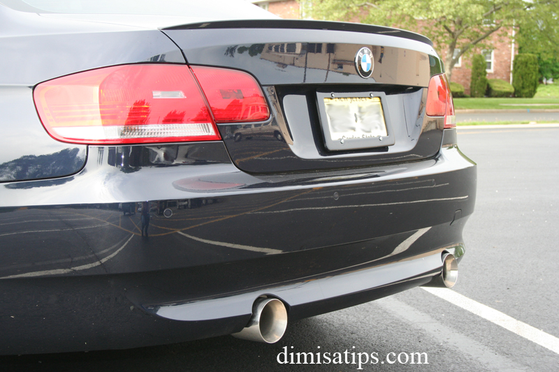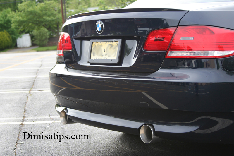 Got my 4" Dimisatips.com exhaust tips installed yesterday on my monaco blue e92 with stock rear bumper. JP from Dimisa's service was great.... awesome price for the quality of these tips and fast shipping. Shop had no problems at all fitting these on my stock exhaust. They really fill out the exhaust opening!