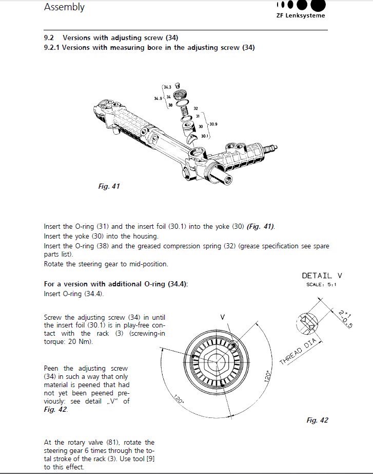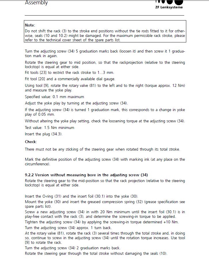 Attached below is a link to what seems to be a guide or service manual for ZF racks used in Jaguars but they look very similar to the ones in our cars and you can see how they work and how to adjust this preload.