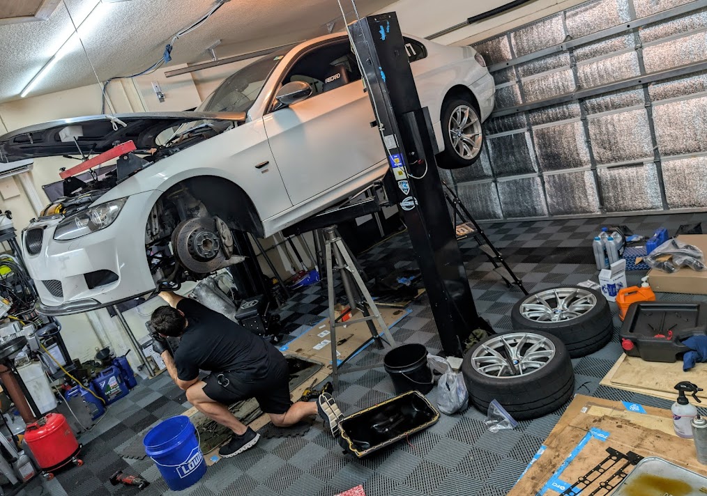 Oct 22, 2023. I finally found a 6MT that was decently priced (most were still high off covid). Sun beaten Florida car, but clean no rust, no accidents. Needed a bunch of work, perfect for the build. ![]() First to fix was the oil leak. Not sure who thought this was a good idea. ![]() First big stack of parts showed up ![]() Tackled the Oil pan issue, ended up swapping in an aluminum auto pan which has more baffling than the manual one and easier/cheaper to get. May use the steel pan later to weld in a baffle kit. ![]() ![]() Some temp wheels to hold me over. ![]() Stage III intake and a bunch of maintenance ![]() Found some seats to hold me over for HPDE events, waiting for the sunroof delete to come in, so most of the interior is still intact. ![]() Second phase of parts came in, ignore M3 hood that was for something else. ![]() It was time to install the headers, engine, trans, diff and subframe mounts, along with the condor chassis mounted shifter ![]() Next up was getting the Spec E9X Ohlin's installed. ![]() I went with a M Factory Metal plate LSD built by Corsa Technik in Pompano, plus a finned e60 diff cover ![]() Next was to gut some of the interior, install the sunroof delete. ![]() Almost ready for a track day, so it was time for brakes. Rebuilt Calipers, Hawk DTC70 Pads, Zimmerman 312mm rotors. There really is no need to upgrade the brakes, 335 brakes also aren't allowed in SE9X. ![]() Phase 1 was complete and ready for it's first track day ![]() First track day was a success, no issues and the car performed well. ![]() ![]() ![]() That was Phase 1 complete. Last summer I helped Biginboca do his oil pan gasket and cooling system overhaul. He had helped a lot with all my questions and spare parts. ![]()