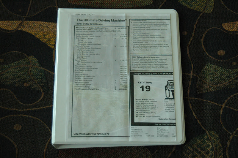 It is time to move on, I love this car, but I want something new... 2007 (6/07 build date) 335i Coupe (E92) 6 speed manual transmission No warranty Mileage: ~36,500 VIN: WBAWB73527P024772 Asking: $30,000 Location: Cincinnati, OH Best way to get a hold of me is through PM High Res Photo album: https://picasaweb.google.com/1112671...eat=directlink (tons of pictures, can take more on request) This has the mid-model year updates that BMW made in their first model year of 335 production. Most notably: - Oil temp gauge goes up to 340F (to put needle roughly in the middle) Car does have the factory oil cooler- I have never had a problem with hot oil in this car. Options: (this car was a special order) - Montego blue w/ saddle brown interior leather - Gray poplar wood - Cold weather package - Premium Package - Sports Package - Navigation - iPod integration - OEM alarm (installed post-delivery) Condition/Maintenance: - All maintenance is documented in binder - Oil has been changed every 5,000 miles, with a break-in oil change - Car was routinely detailed in Atlanta by On-Site Shine (http://www.onsiteshine.com/) - Never driven in salt (I lived in Atlanta most winters I owned this car, otherwise it was stored on tire cushions and smart charger) - All recalls performed (new fuel pump/injectors/etc.)- although fuel pump never failed (comes with 100k/10 year warranty) - Car is accident/body repair free - 36k+ of road rash (stone chips) on front bumper - OEM Bridgestone RE050A (RFT) with plenty of tread left Record binder: Mods: - Engine has never been chipped/tuned - BMW leather shift knob (still have original chrome/plastic deal) - Euro light switch (rear fogs) - M3 front control arms/tension arms professionally installed (http://www.trademotion.com/partlocat...catalogid=4462) - Have original parts Increased camber can be seen in alignment specs (before refers to before alignment was performed, not before M3 parts were installed): ![]() M3 control arms eliminated lateral movement in front suspension that was driving me crazy. |