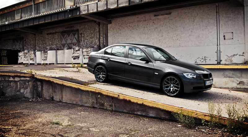 19" Gunmetal on Sparkling Graphite E90, cloudy Sunday